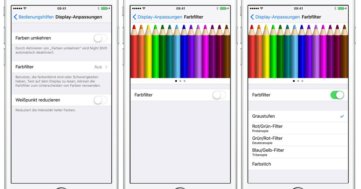 Wenn du über eine Farb- oder Lichtempfindlichkeit verfügst tippe auf Farbstich um den Farbton der gesamten Anzeige auf deinem iPhone iPad oder iPod touch zu ändern. Schlagschäden und harte Gegenstände die auf das Display treffen führen ebenfalls schnell zum Bildschirmtod.