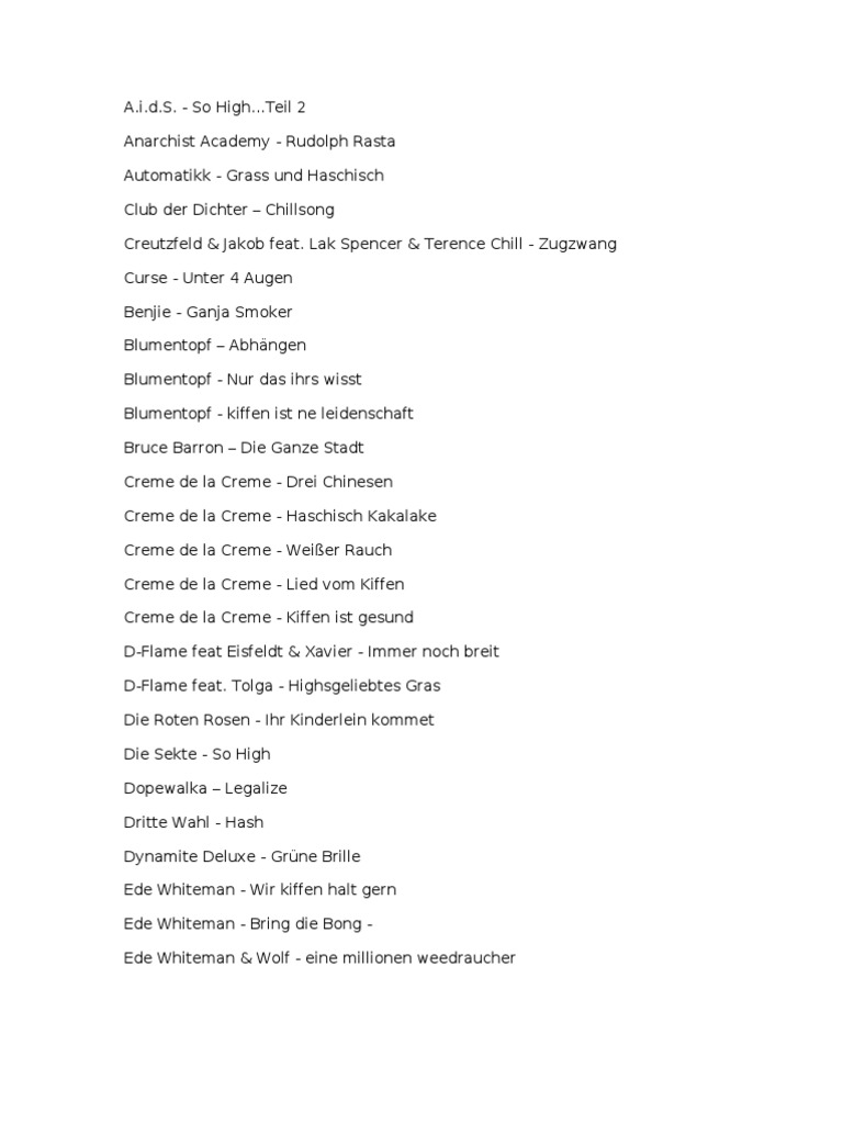Das Abhängigkeits- und Gesundheitsrisiko bei Cannabis ist um einiges geringer als bei erlaubten rekreativ Anm. Mir war langweilig. 2 D Volle Köpfe A rote Augen Bm Fm ein trockener Mund G das schmeckt uns und D das macht uns Spass A D denn Kiffen ist GESUND.